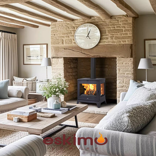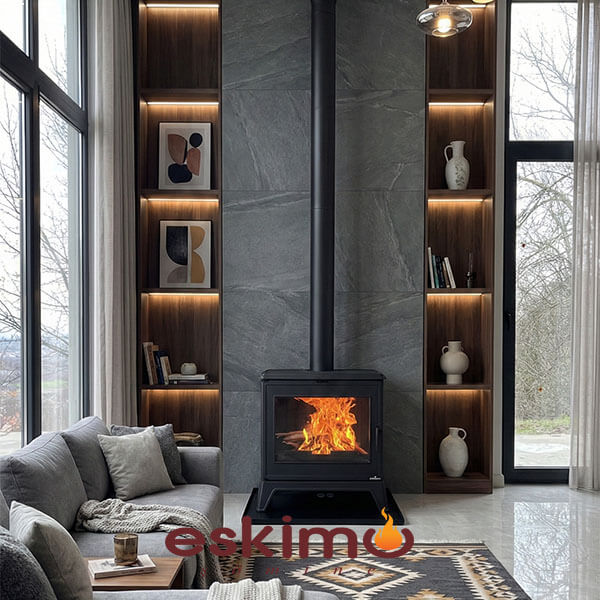 Eskimo Şömine’nin sattığı ekipmanların verimliliğine olan bağlılığı, bunların hemen hemen hepsinin verimlilik sınıfı 1'de, yani %70 veya daha fazla verime sahip olduğu anlamına geliyor. %70 verimlilik, ekipmanın yakacak odunun içerdiği enerjinin %70'ini oda ısıtması için kullanabileceği anlamına gelir; yani çok daha az yakıtla aynı miktarda ısı üretecektir. Isıtma ekipmanlarını sınıflandırmaya yönelik CE standartlarına göre, %75 verimliliğe sahip (verim sınıfı 1) 5 kW'lık bir cihaz, 35 m²'lik bir odayı ısıtmak için saatte yaklaşık 1,6 kg yakacak odun tüketecektir. Karşılaştırma yapacak olursak, geleneksel bir şöminede verim yaklaşık %10 olacaktır, bu da aynı 35 ㎡'lik odayı ısıtmak için aynı 5 kW'ı üretmek amacıyla yaklaşık 12 kg yakacak odun tüketileceği anlamına gelir.