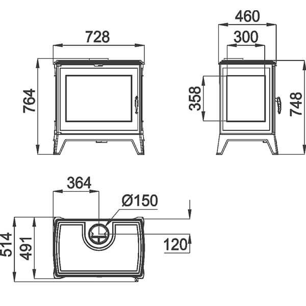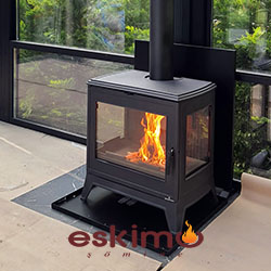 3 Taraflı Camlı Geniş ekran alev görüntüsü ve derinliği üst kullanım alanı ile pişirme ve ısıtma olanağı sağlar. 75 m2 alan ısıtma kapasitesine sahiptir.