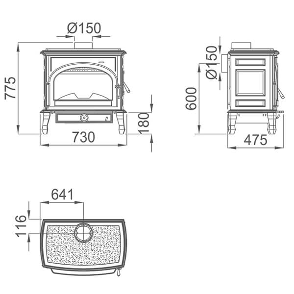Geniş ekran alev görüntüsü ve derinliği üst kullanım alanı ile pişirme ve ısıtma olanağı sağlar. 60 m2 alan ısıtma kapasitesine sahiptir.