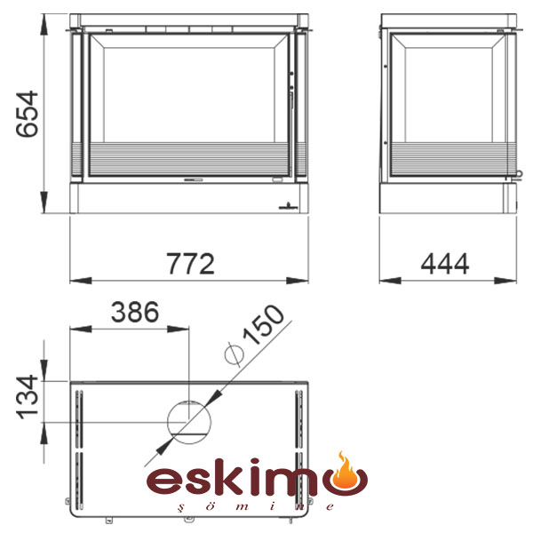 Geniş ekran alev görüntüsü ve 3 taraftan seyir imkanı ile pişirme ve ısıtma olanağı sağlar. 100 m2 alan ısıtma kapasitesine sahiptir.
