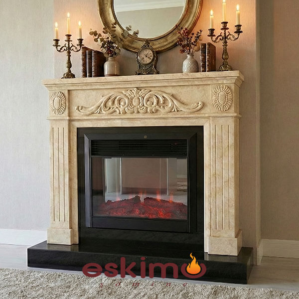 Elektrikli Şömine ETE-026 El Oyması Masif Ahşap , Siyah Granit Uygulama ( farklı renk ve granit seçenekleri ile de yapılabilir ) 2 Boyutlu Elektrikli Şömine Haznesi Uzaktan Kumandalı Bağımsız Alev Efektli 1,5 Kw Isıtma Özelliği ile Uygulanmış Klasik Şömine Modeli.