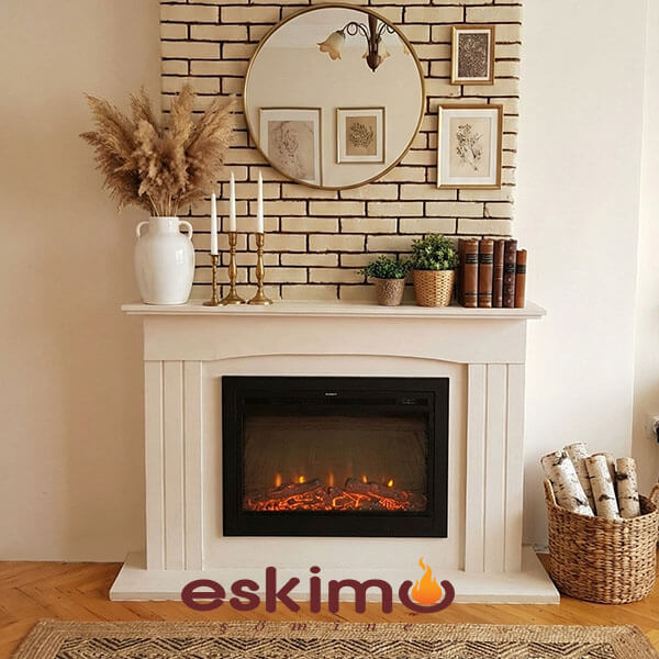 Elektrikli Şömine ETE-029 Modeli, Beyaz limra taşı ( Limestone ) ve 2 boyutlu hazne uygulanmış klasik şömine modeli . Bacası bulunmayan mekanlarda uygulanabilir olması nedeni ile şömine keyfinden mahrum kalmak isteyenlerin tercih ettiği ürün grub larının başında gelir.