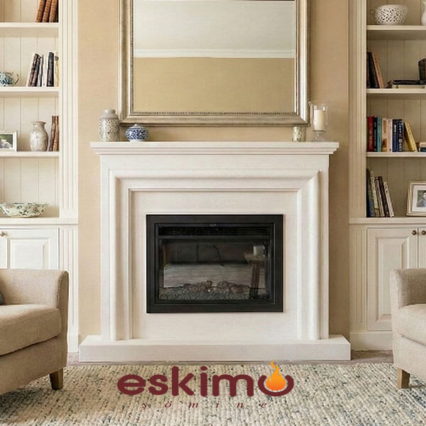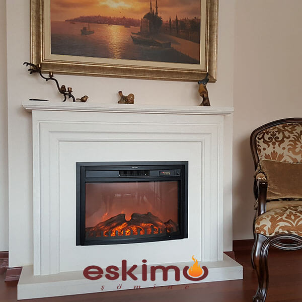 Elektrikli Şömine ETE-032 Modeli doğal beyaz limra taşı ( limestone ) ile imal edilmiş 2 boyutlu uzaktan kumanda kontrol bağımsız alev efektli hazne uygulanmış klasik tasarım şömine. Klasik mekanlar için tasarlanmış bacaya ihtiyaç duymayan, bacasız mekanlarda uygulana bilen şömine modeli.