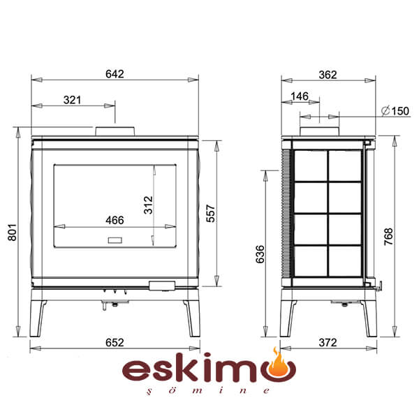 Invicta Kiara Şömine Soba Modeli Modern Şömine Soba Modeli Tamamı Pik Döküm Vitro Seramik Cam Çekmece Küllüklü Çift Yanmalı Şömine Soba