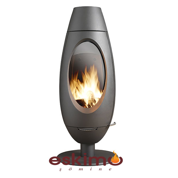 Invicta Ode Şömine Soba Modeli İthal Fransız Modern Oval Şömine Soba Modeli Tamamı Pik Döküm Vitro Seramik Cam Çekmece Küllüklü Çift Yanmalı Şömine Soba