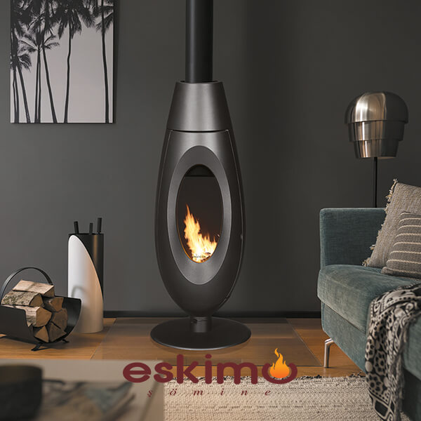 Invicta Ovatio Şömine Soba Modeli Oval Modern Şömine Soba Modeli Tamamı Pik Döküm Vitro Seramik Cam Çekmece Küllüklü Çift Yanmalı Şömine Soba