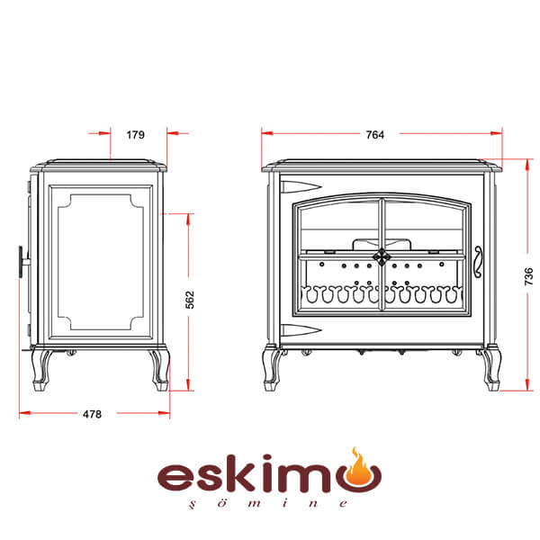 Invicta Rustica Şömine Soba Modeli Modern Şömine Soba Modeli Tamamı Pik Döküm Vitro Seramik Cam Çekmece Küllüklü Çift Yanmalı Şömine Soba
