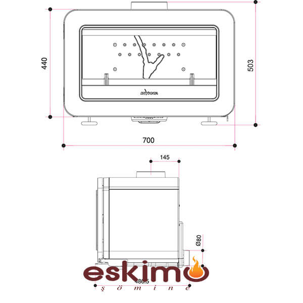 Invicta Wilson Soba Şömine Soba Modeli Modern Şömine Soba Modeli Tamamı Pik Döküm Vitro Seramik Cam Çekmece Küllüklü Çift Yanmalı Şömine Soba