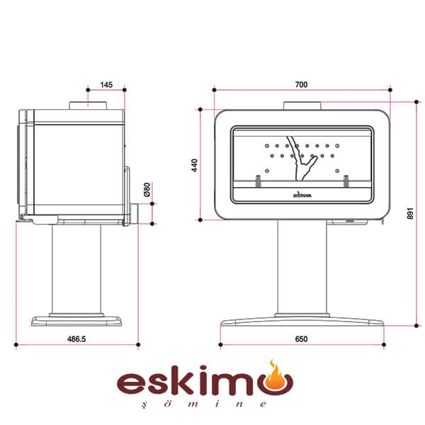 Invicta Wilson Sur Pied Soba Şömine Soba Modeli Modern Şömine Soba Modeli Tamamı Pik Döküm Vitro Seramik Cam Çekmece Küllüklü Çift Yanmalı Şömine Soba