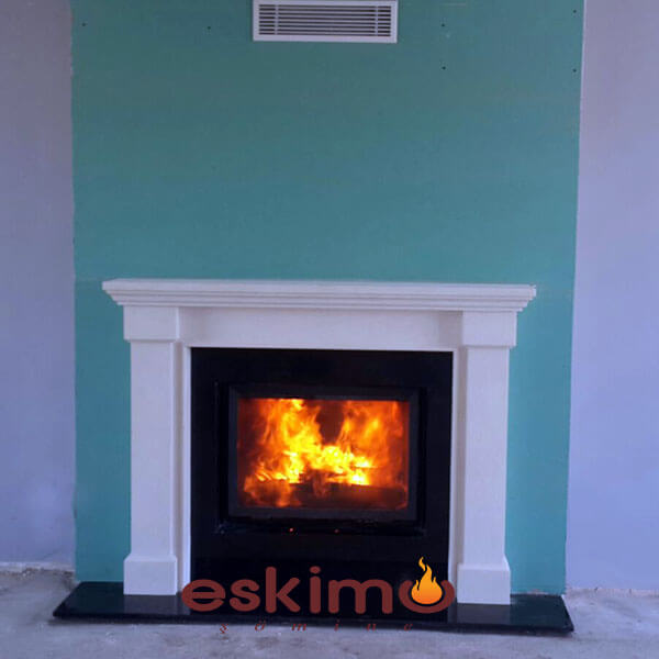Beyaz limra doğaltaş ve siyah granit çerçeve uygulanmış odunlu kapalı sistem klasik şömine modelidir. Minimum 150x70 cm'lik kullanım alanına ihtiyaç duymakta olan bir klasik şömine modelidir.